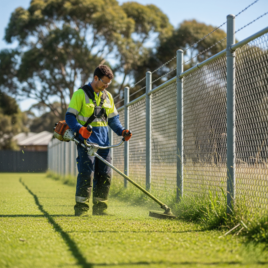 - Use a string trimmer or lawn edger to cut grass along the fence line.
